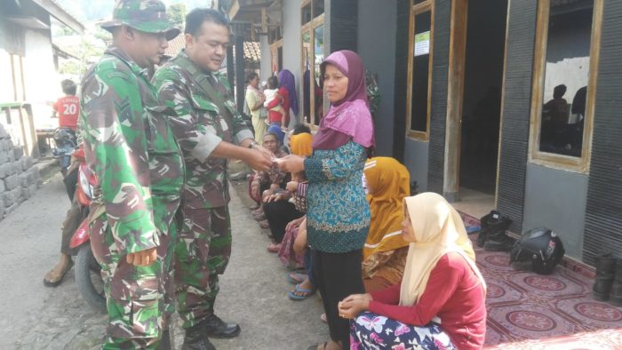 Terlihat salah satu anggota Satgas TMMD didampingi Babinsa Pasegeran, Serda Suwondo sedang menyerahkan ULP kepada salah satu ibu asuh, Rominah (42) warga Rt. 03 Rw. 03 Dusun/Desa Pasegeran.