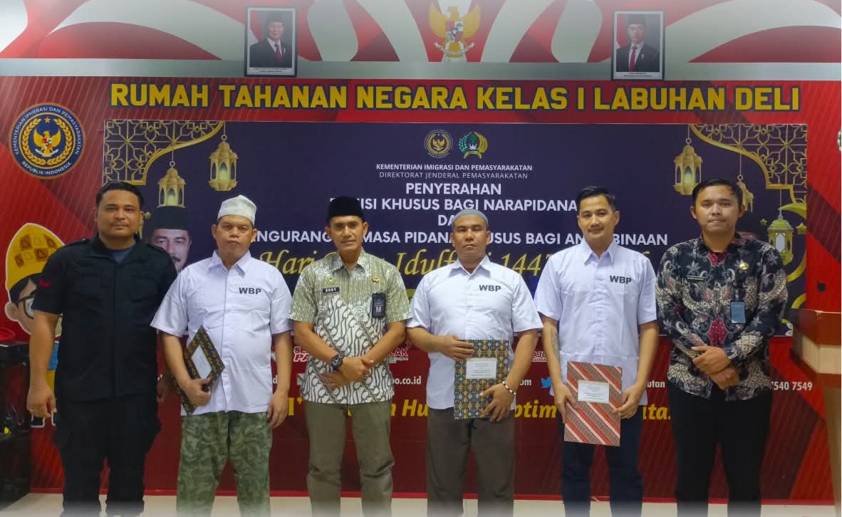 Labuhan Deli — Dalam rangka perayaan Hari Raya Idul Fitri 1447 Hijriah, Rumah Tahanan Negara (Rutan) Kelas I Labuhan Deli melaksanakan kegiatan penyerahan Remisi Khusus (RK) Idul Fitri kepada narapidana yang telah memenuhi syarat administratif dan substantif sesuai ketentuan perundang-undangan yang berlaku.