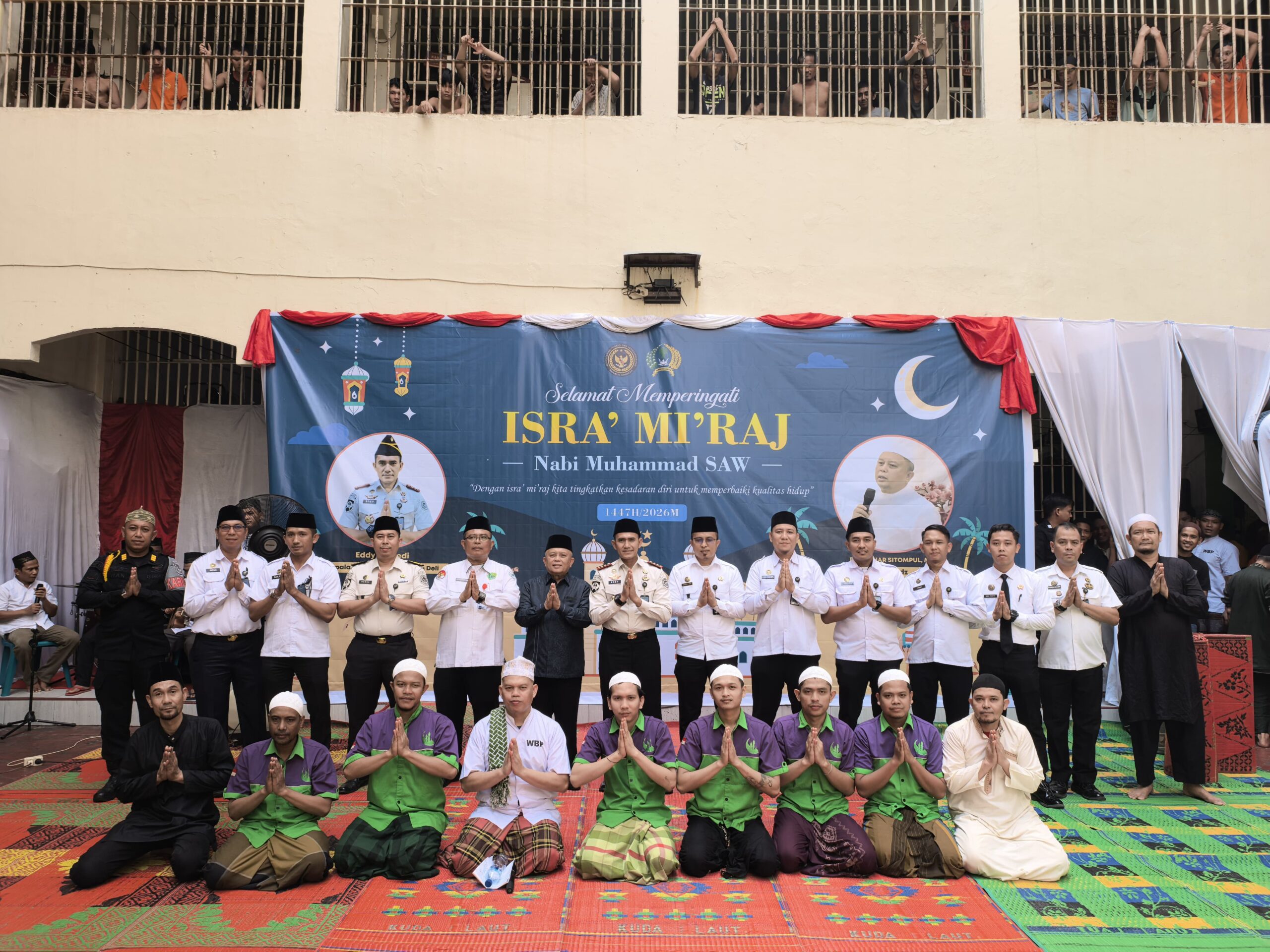 Labuhan Deli — Rutan Kelas I Labuhan Deli melaksanakan kegiatan peringatan Isra Mi’raj Nabi Muhammad SAW 1447 Hijriah/2026 Masehi yang berlangsung khidmat dan penuh makna, Rabu (11/2). Kegiatan ini diikuti oleh jajaran pegawai serta warga binaan pemasyarakatan sebagai bagian dari pembinaan kepribadian dan peningkatan keimanan. (11/02/2026)