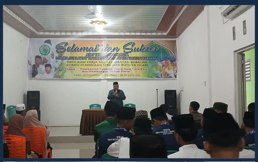 Pangkalan Brandan — Gema shalawat mengalun di Kecamatan Babalan saat pembukaan Lomba Shalawat Tingkat Remaja 2025 digelar oleh Majelis Ulama Indonesia Kecamatan Babalan melalui Komisi Pembinaan Seni dan Budaya Islam. Kegiatan ini menjadi ruang bagi generasi muda untuk menumbuhkan kecintaan kepada Rasulullah SAW sekaligus memperkuat syiar Islam di wilayah tersebut.