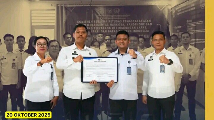Pangkalan Brandan – Rumah Tahanan Negara Kelas IIB Pangkalan Brandan melaksanakan penandatanganan komitmen bersama seluruh jajaran Pemasyarakatan se-Indonesia dalam upaya pemberantasan peredaran gelap narkoba, handphone, dan barang-barang terlarang lainnya. Kegiatan ini menjadi bentuk nyata kesungguhan petugas pemasyarakatan dalam menjaga integritas dan profesionalitas di lingkungan Lapas, Rutan, LPKA, dan Bapas.