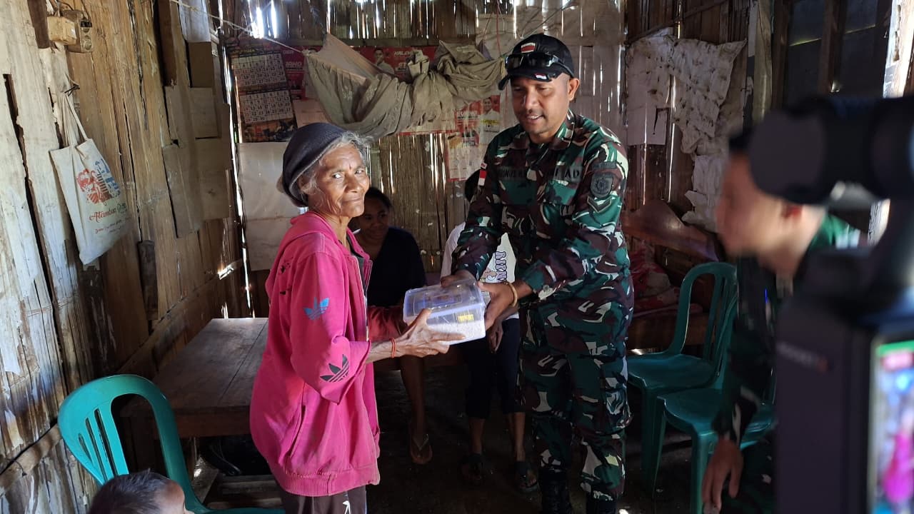 TTU – Satgas Pamtas RI-RDTL Sektor Barat Yonarhanud 2 Kostrad melaksanakan kegiatan rutin Jumat Berkah di wilayah perbatasan guna membagikan sembako kepada masyarakat di sekitar Desa Eban, Kecamatan Miomaffo Barat, Kabupaten TTU, Jumat (28/11/2025).