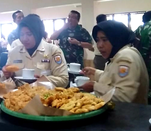 Di acara tersebut tampak snack dan minuman yang di siapkan meminimalisir penggunaaan plastik sehingga untuk minum para peserta disiapkan dispenser dan kuenya ada yang berbungkus dengan daun pisang.