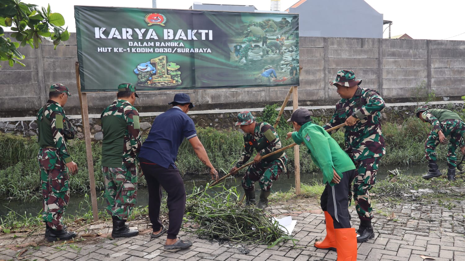 Mayor Inf Sumarji menyampaikan bahwa kegiatan karya bakti ini merupakan wujud kepedulian TNI terhadap lingkungan sekaligus bagian dari rangkaian peringatan HUT ke-1 Kodim 0830/Surabaya.