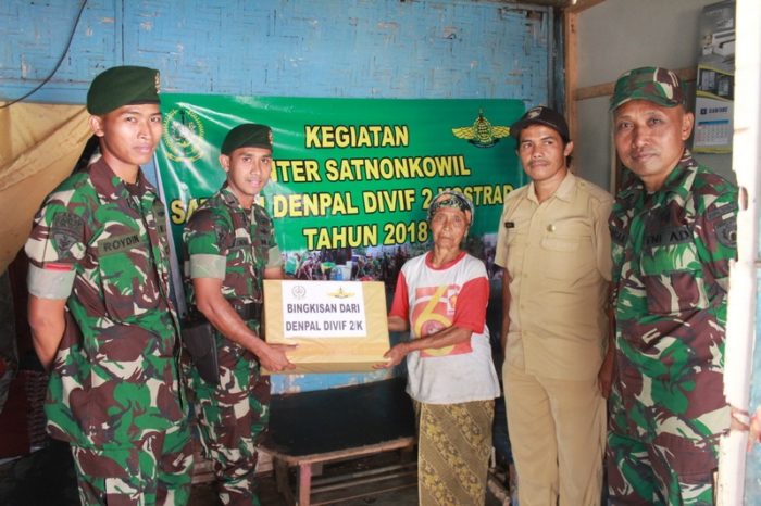 PB|Malang – Kepedulian prajurit Detasemen Peralatan ( Denpal ) Divif 2 Kostrad terhadap masyarakat sekitar diwujudkan dengan mengadakan kegiatan pembagian bingkisan Sembako kepada warga Dusun Petung Wulung Desa Toyomarto Kecamatan Singosari Kabupaten Malang pada hari selasa (05/06).