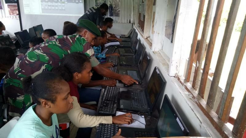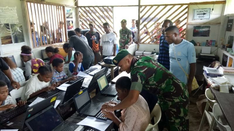 Memberamo Raya – Minimnya pengetahuan masyarakat pedalaman tentang penggunaan komputer menggerakan inisiatif dari Satgas Pamrahwan 755 Kostrad Pos Trimuris bekerjasama dengan Majelis Laharoy untuk membantu masyarakat Kampung Trimuris Distrik Memberamo Hilir Kab. Memberamo Raya, agar lebih memahami dan mengenal tentang perkembangan teknologi. Rabu (6/2/19).