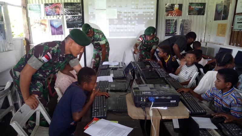 Memberamo Raya – Minimnya pengetahuan masyarakat pedalaman tentang penggunaan komputer menggerakan inisiatif dari Satgas Pamrahwan 755 Kostrad Pos Trimuris bekerjasama dengan Majelis Laharoy untuk membantu masyarakat Kampung Trimuris Distrik Memberamo Hilir Kab. Memberamo Raya, agar lebih memahami dan mengenal tentang perkembangan teknologi. Rabu (6/2/19).