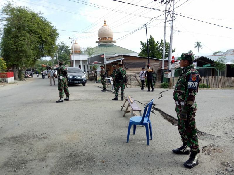Palu – Sebanyak 60 orang personel dari Yonif Para Raider 432 Kostrad SSY 1 yang dipimpin oleh Mayor Inf Gustiawan Ferdianto yang tergabung dalam Satgas Penanggulangan Bencana Alam (Gulbencal) Divif 3 Kostrad melaksanakan pengamanan disekitar Kel. Balaroa Kec. Palu Barat Kota Palu tepatnya di jalan Manggis, jalan Kamboja dan jalan Kelor Sulteng. Rabu (10/10/2018).