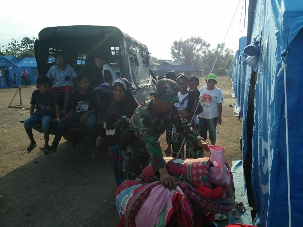 Palu – Batalyon Arhanud 16/SBC Divif 3 Kostrad yang tergabung dalam Satgas Penanggulangan Bencana Alam Divif 3 Kostrad merelokasi masyarakat yang masih tinggal di pinggir pantai di Kel. Kayumalue Kec. Palu Utara. Kota Palu. Rabu (17/10/2018).