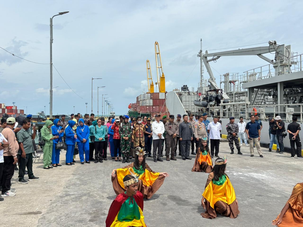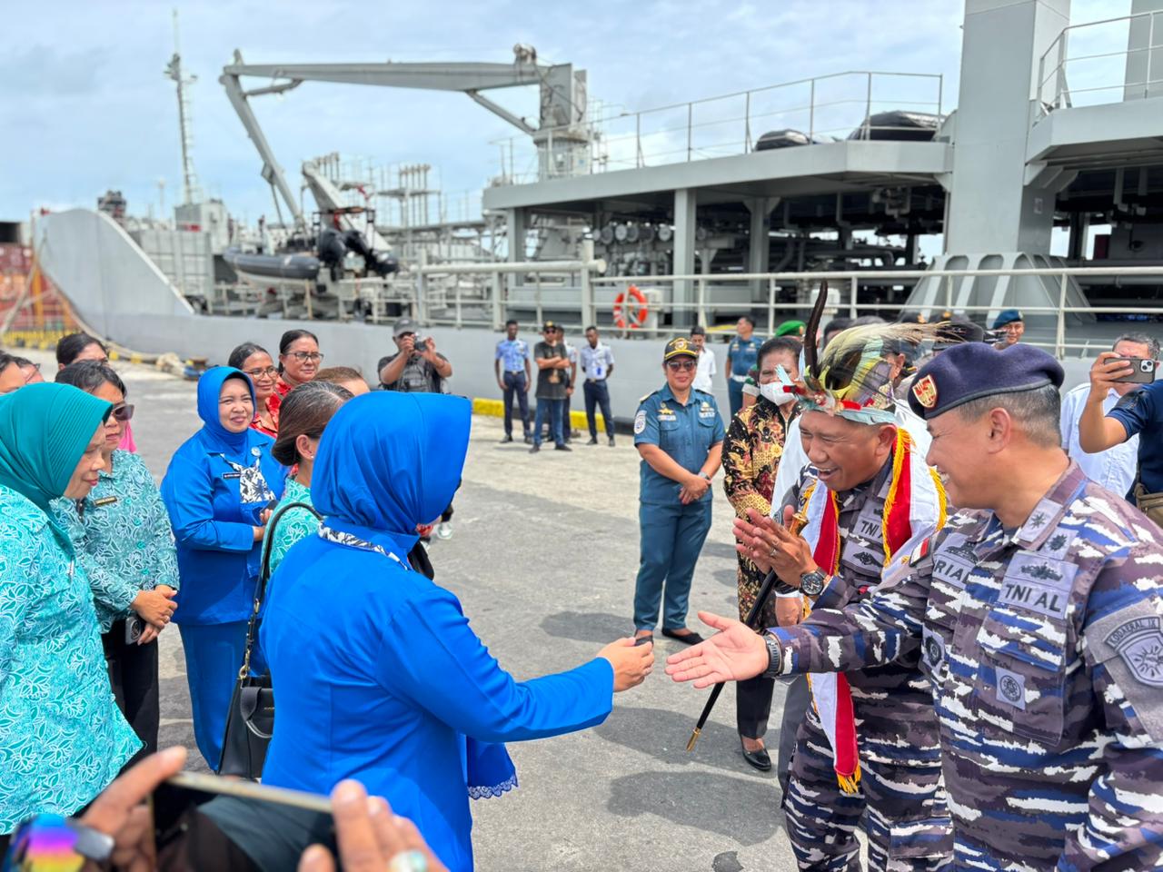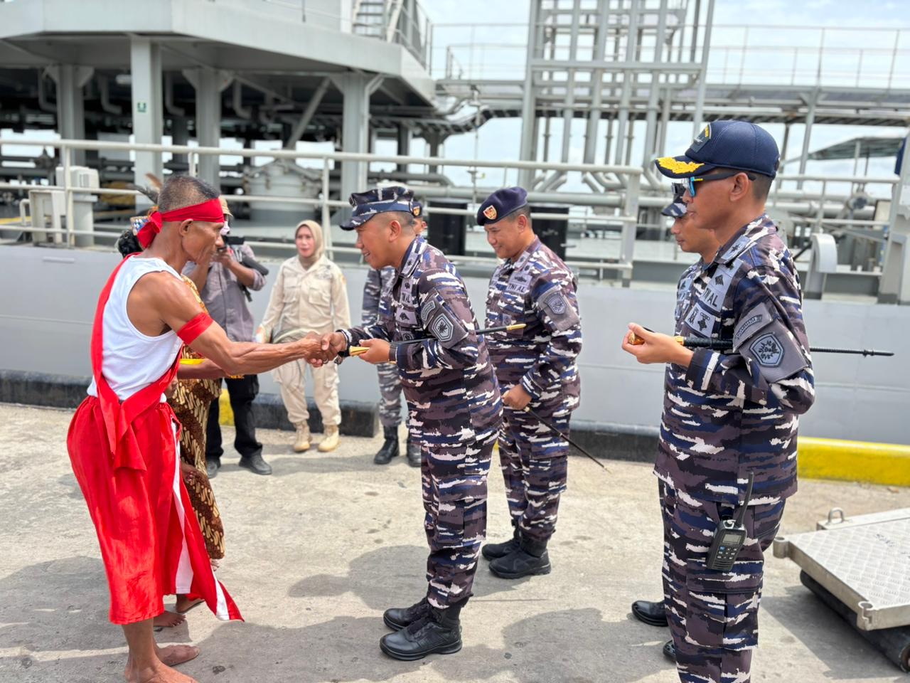 Kedatangan Satgas Ops Trisila-26, yang dipimpin Wadan Satgas, Kolonel Laut (P) Son Haji Hariyoko disambut langsung Komandan Pangkalan TNl Angkatan Laut (Danlanal) Aru, Letkol Laut (P) Sriadi, S.E. beserta jajaran Forkopimda Kepulauan Aru dalam sebuah upacara penyambutan secara adat dan tarian Cendrawasih yang berlangsung khidmat.