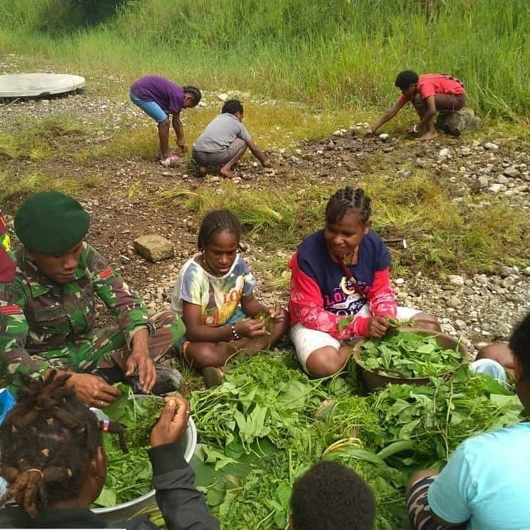 Tampak keceriaan di rasakan bersama antara masyarakat dan anggota satgas pamrahwan Yonif 754/ENK Kostrad yang saling bantu membantu untuk melakukan dan mengolah bahan- bahan yang akan di gunakan dalam acara bakar batu tersebut.(penkostrad|red)