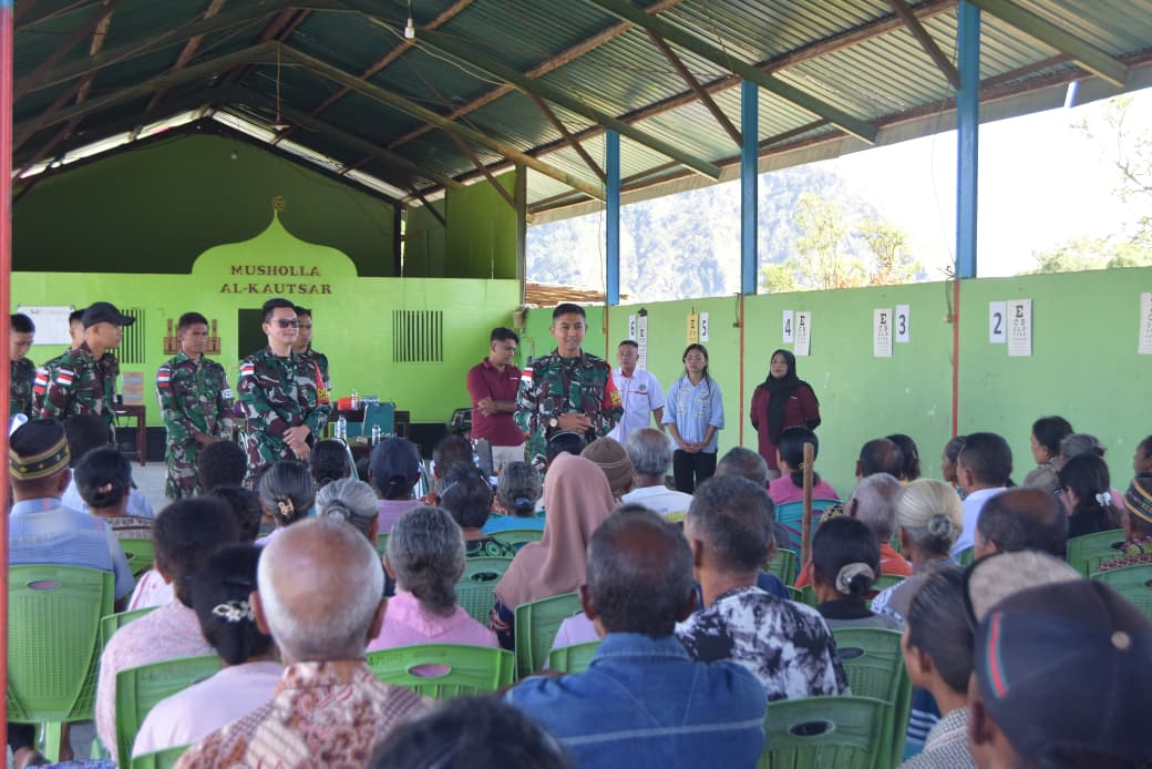 TTU – Dalam suasana Peringatan Hari Guru Nasional dan HUT ke-80 PGRI, Satgas Pamtas RI-RDTL Sektor Barat Yonarhanud 2 Kostrad tunjukkan kepedulian terhadap kesehatan mata dengan mengadakan Pemeriksaan Mata dan Pembagian 500 Kacamata Gratis di Makosatgas, Desa Eban, Kecamatan Miomaffo Barat, Kabupaten TTU, Rabu (26/11/2025).