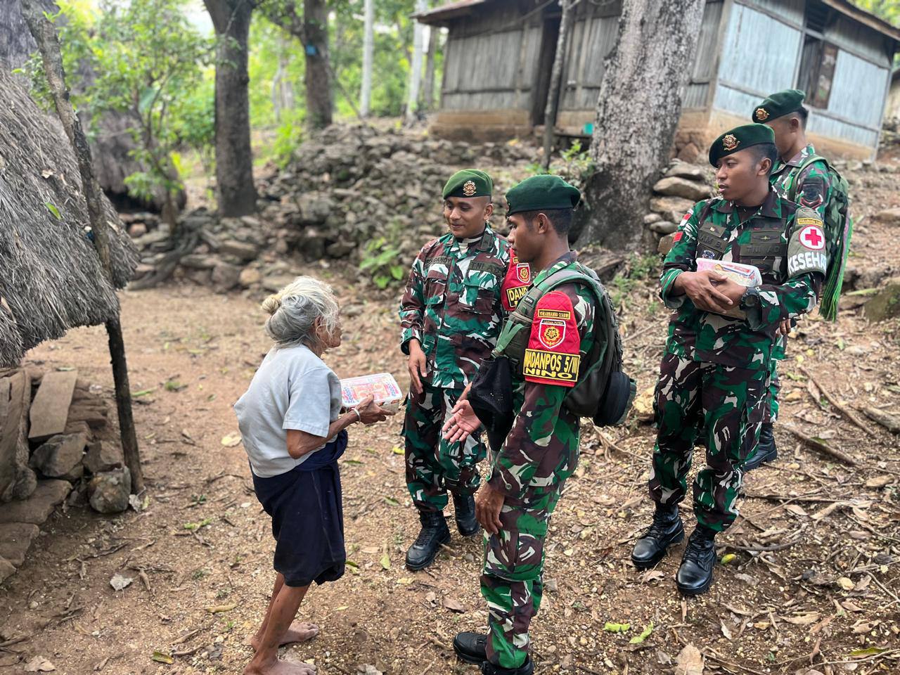 TTU – Sebagai wujud kepedulian dan kemanunggalan TNI dengan rakyat, Satgas Pamtas RI–RDTL Sektor Barat Yonarhanud 2 Kostrad Pos Nino melaksanakan kegiatan berbagi kebutuhan pokok (Sembako) kepada masyarakat di wilayah Desa Nino, Kecamatan Bikomi Nilulat, Kabupaten TTU, Minggu (21/12/2025).