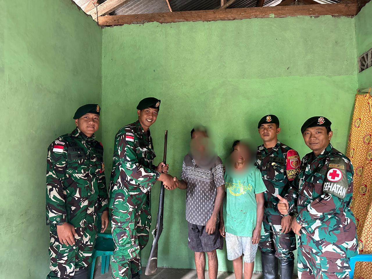 Kupang – Upaya pembinaan teritorial dan komunikasi sosial yang dilakukan Satgas Pamtas RI–RDTL Sektor Barat Yonarhanud 2 Kostrad Pos Oepoli Tengah terus menunjukkan dampak nyata. Dua Senjata Api rakitan diserahkan kepada personil Satgas di Desa Nunuana, Kecamatan Amfoang Timur, Kabupaten Kupang.