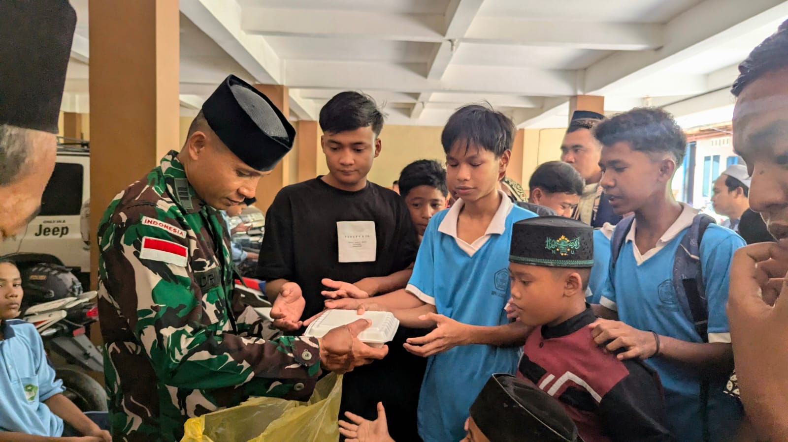 Dalam kegiatan ini, prajurit Satgas membagikan makanan gratis kepada jemaah dan masyarakat sekitar usai pelaksanaan salat Jumat.