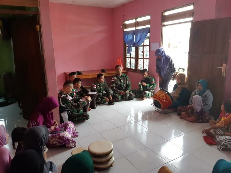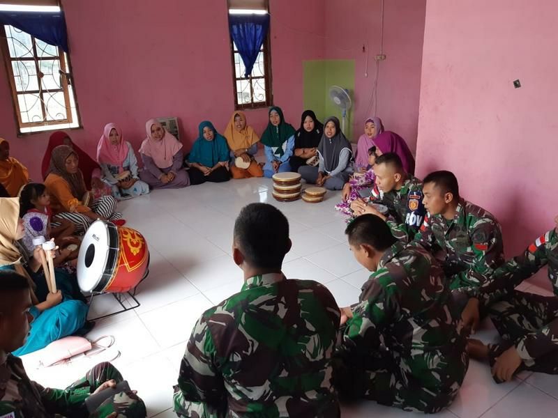 Muara Tami – Bertempat di Desa Sanggaria Arso 1, Satgas Pamtas Yonif PR 328 Kostrad Pos Kout KM 31 yang dipimpin oleh Serka Eko Dian dan delapan personel lainnya melaksanakan pelatihan Marawis bersama ibu-ibu pengajian di Aula Masjid Fisabilillah Arso 1, Minggu (16/12).