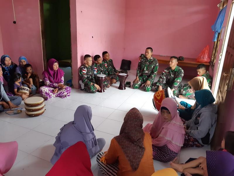 Muara Tami – Bertempat di Desa Sanggaria Arso 1, Satgas Pamtas Yonif PR 328 Kostrad Pos Kout KM 31 yang dipimpin oleh Serka Eko Dian dan delapan personel lainnya melaksanakan pelatihan Marawis bersama ibu-ibu pengajian di Aula Masjid Fisabilillah Arso 1, Minggu (16/12).