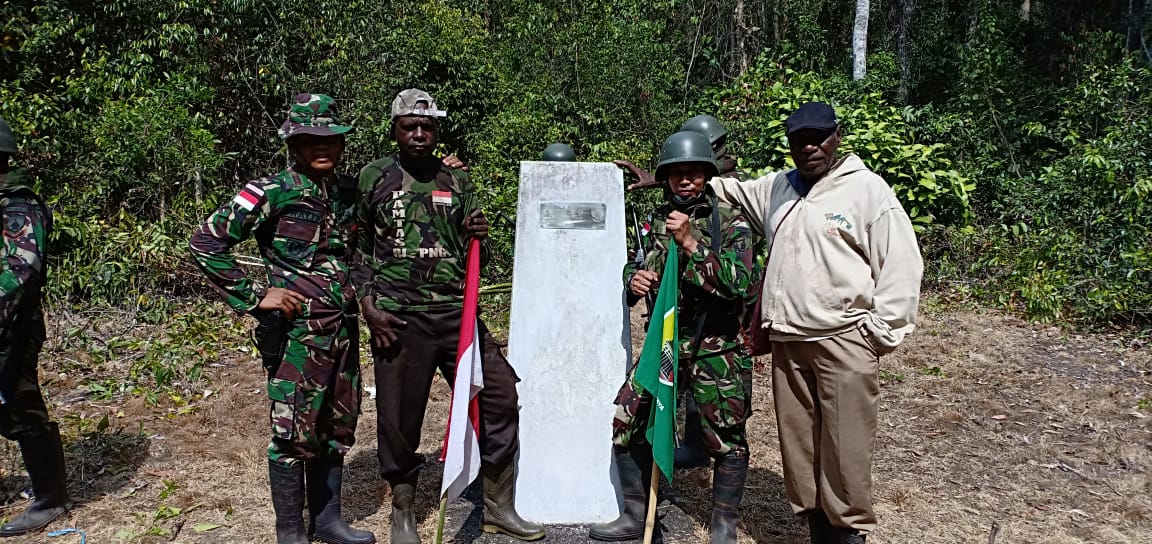 Merauke – Satgas pengaman perbatasan Yonif Mekanis 521/DY, terus memastikan jika patok perbatasan antara Republik Indonesia dan Papua Nugini (PNG) tetap pada posisi yang aman.