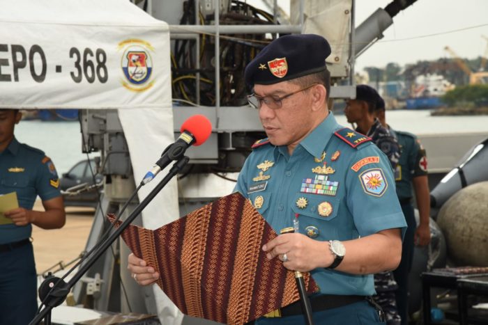Batam – Ditengah tugas diplomasi yang diembannya, Satgas Port Visit TNI AL 2019 melaksanakan upacara Peringatan Hari Sumpah Pemuda yang dipimpin Laksma TNI Rahmat Eko Rahardjo, di atas geladak KRI Frans Kaisiepo-368 yang tengah sandar di Pelabuhan Batu Ampar, Batam pada Senin (28/10).