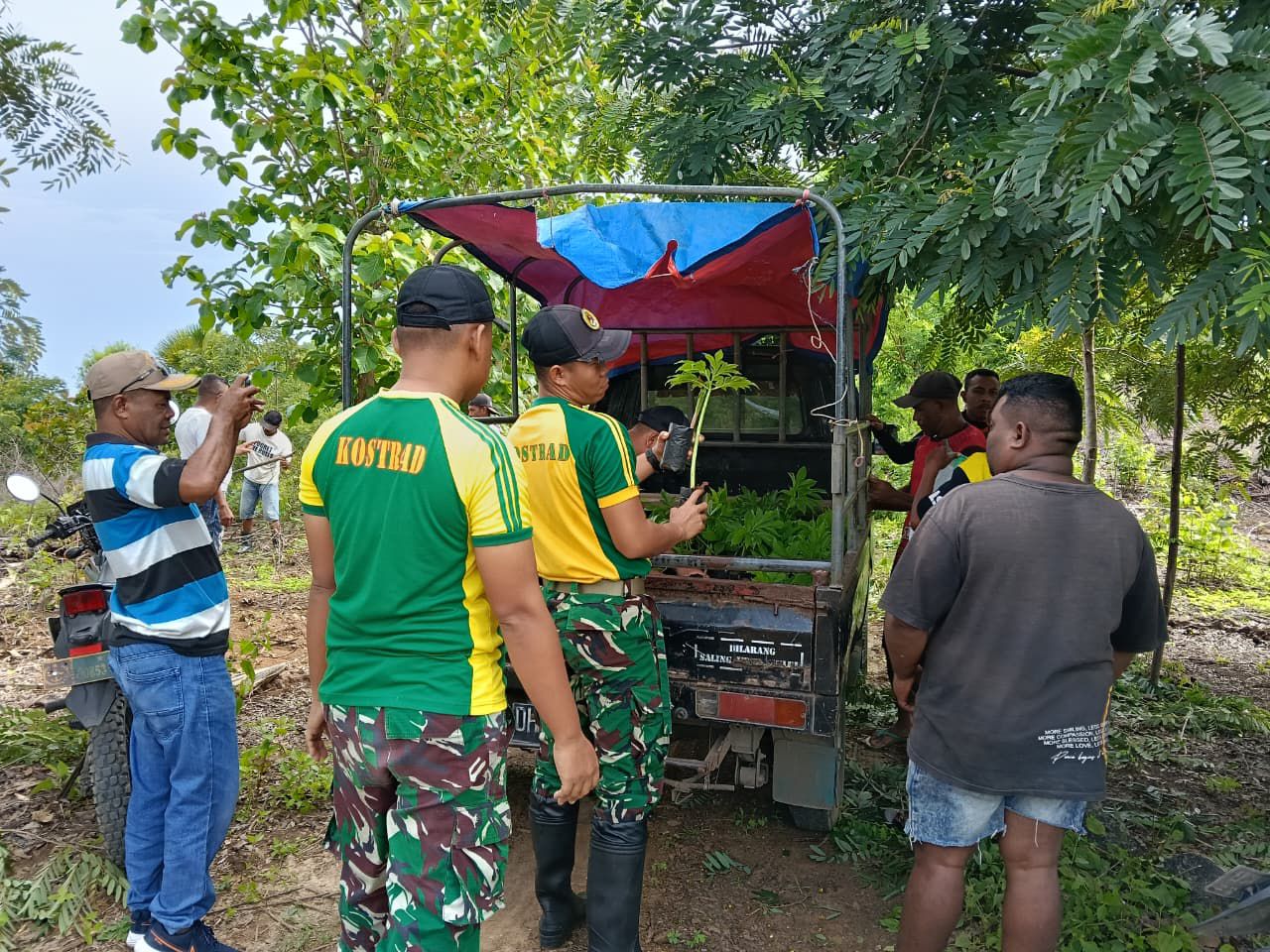 Belu – Satgas Pamtas RI–RDTL Sektor Timur Yonarmed 12 Kostrad Pos Salore melaksanakan kegiatan penanaman 1.000 pohon porang bersama warga Desa Tulakadi, Kecamatan Tasifeto Timur, Kabupaten Belu. Kegiatan ini merupakan upaya bersama untuk mendorong ketahanan pangan dan pengembangan potensi pertanian lokal di wilayah perbatasan.