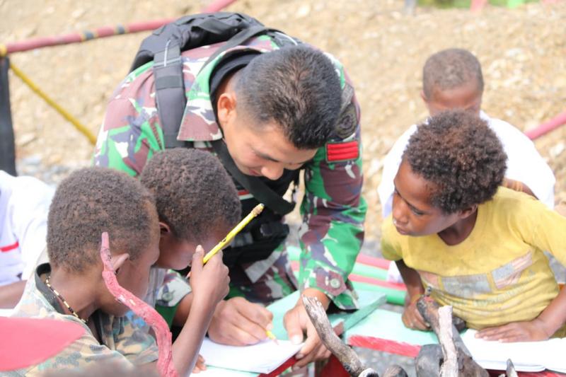 Puncak Jaya – Satgas Pamrahwan Puncak Jaya Yonif Mekanis Raider 412 Kostrad berkontribusi dalam upaya percepatan pembangunan di Kabupaten Puncak Jaya pada sektor pendidikan. Pos Sanoba melaksanakan kegiatan belajar mengajar untuk membantu anak putus sekolah warga Kampung Sanoba, Gurage, Nalime, Yagonik, Angkutari, Berime, dan Tiyongga Distrik Gurage. Rabu (06/02/2019).