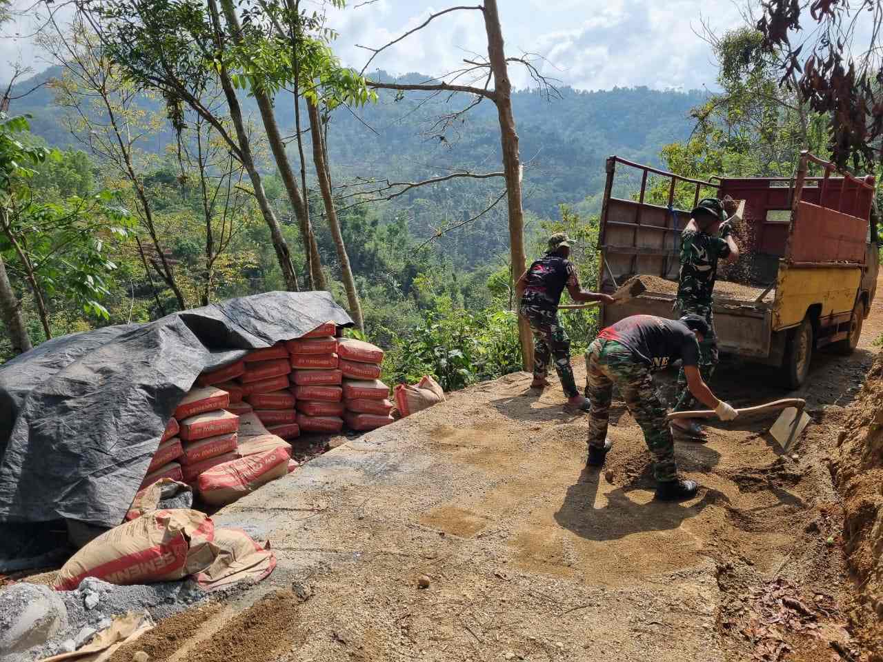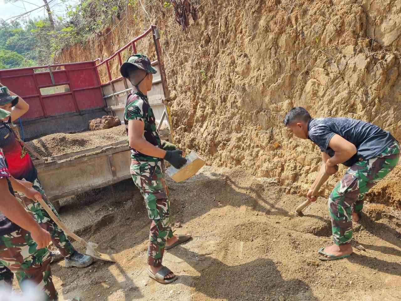 Pacitan, – Material utama sasaran fisik rabat beton jalan berupa pasir sangat dibutuhkan dalam pelaksanaan program TMMD Reguler Ke-126 Kodim 0801/Pacitan yang dilaksanakan di Dusun Krajan, Desa Petungsinarang, Kecamatan Bandar, Kabupaten Pacitan, Senin (20/10/2025).