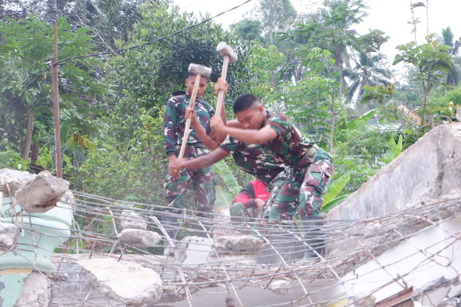 Rehab dilakukan karena kondisi bangunan lama sudah kurang layak digunakan sebagai fasilitas kesehatan. Personel Satgas TMMD bersama masyarakat terlihat bergotong royong membongkar bagian yang rusak dan menyiapkan material untuk pembangunan kembali.