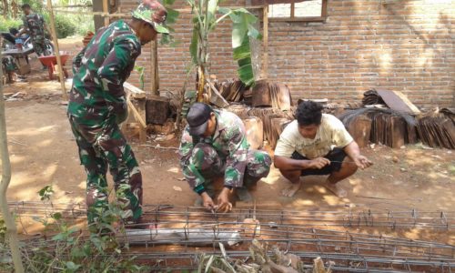 Batang – Anggota Satgas Tentara Manubggal Membangun Desa (TMMD) Reguler ke-103 tahun 2018 Kodim 0736/Batang, Kembali berulah dengan merangkai besi untuk membuat pondasi rumah tidak layak huni (RTLH) milik Danuri (60) Warga Dukuh Gepret Rt.03/01 Desa Durenombo,Kecamatan Subah,Kabupaten Batang, Jum’at ( 02/11/2018 )