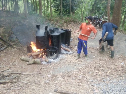 Batang – Bara api lelehkan Aspal Hitam,serasa membakar dosa yang kelam Satgas TMMD Reguler ke 103 Kodim 0736/Batang membakar aspal untuk membangun jalan penghubung antar Dusun yang merupakan salah satu sasaran fisik TMMD Reguler di Desa Durenombo Kecamatan Subah Kabupaten Batang,selasa (06/11/18)