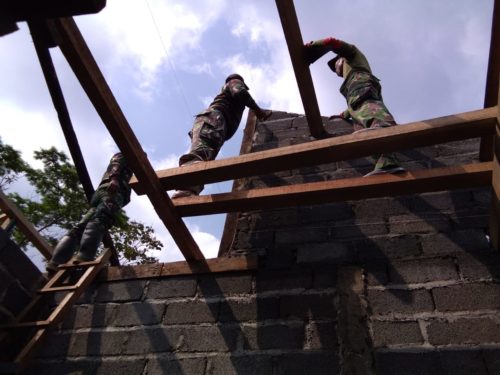 “Yang saat ini kita kerjakan memang sederhana dan kelihatanya tidak berbahaya pak,namun jangan salah,apabila tidak konsentrasi sekali terpeleset bisa jatuh,”ujar serda Agung yang sedang melakukan pemasangan tiang pancang atas tersebut.