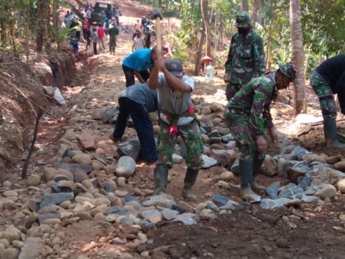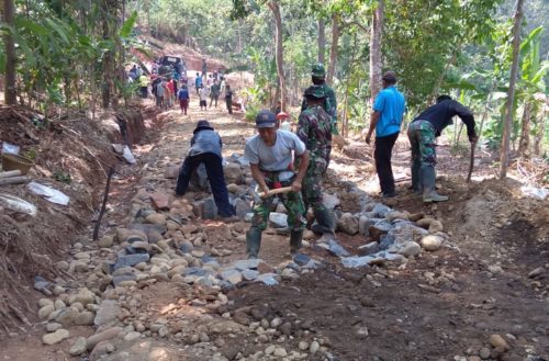 Batang – Dengan tenaga yang ekstra prima serta gatal membantu warga, Serka Mudiharso Satgas TMMD Reguler 103 yang juga sebagai anggota Kodim 0736/Batang ini, tampil trengginas memecahkan batu gunung sebagai bahan utama pembuatan Makadam sepanjang 422 meter dan target pengaspalan 2359 m di desa sasaran Durenombo Selasa (16/10/2018).