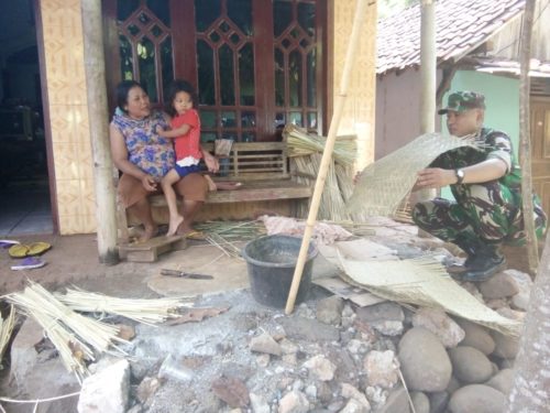 Batang – Di sela-sela kesibukannya dalam kegiatan Satgas tmmd ke 103 tahun 2018 di wilayah Kodim 0736 batang Serda Sugianto mendatangi rumah Ibu Siti Aminah (38) yang lagi sibuk mengerjakan kerajinan tangan berupa irig (Kalo) di Dusun Durenombo RT 02/03 Desa Durenombo Kecamatan Subah Kabupaten Batang,selasa (23/10/18)