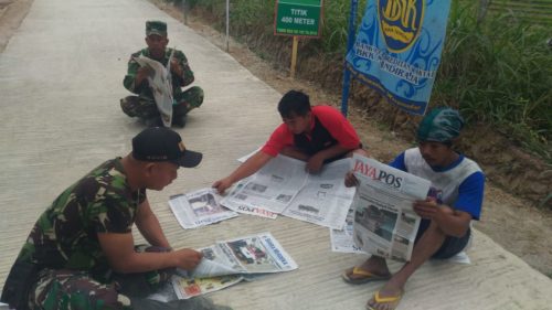 Banjarnegara – Sarana mengedukasi warga masyarakat khususnya di desa terpencil yang paling mudah dilakukan adalah dengan surat kabar. Untuk itulah Danposramil Pandanarum, Peltu Pojos beserta Babinsa setempat, Serda Suwondo membawakan media cetak kepada warga Masyarakat Pasegeran Kecamatan Pandanarum.