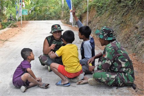 Sementara diserukan Anton, “Ibu kota Indonesia, ayo siapa yang bisa jawab ?,” kontan Krisnanto menjawab “Jokowi Pak” ketawa pun meledak tak tertahankan. Ini nyata terjadi di rabat beton TMMD sepanjang 1,1 kilometer itu.