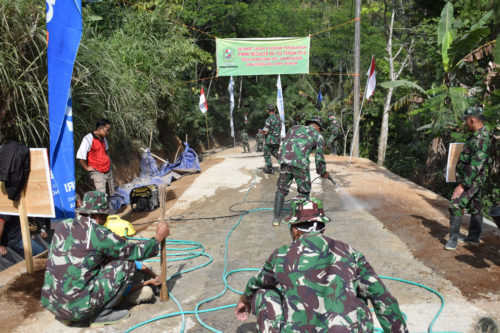 Senyum para TNI tersebut semakin lapang mengingat tugas mereka akan segera berakhir dalam 3 hari kedepan. Selain terjun fisik membantu finishing beton, mantri tentara tersebut tugas utamanya adalah memberikan pelayanan kesehatan kepada warga masyarakat setempat. (pendim0704|red|noven).