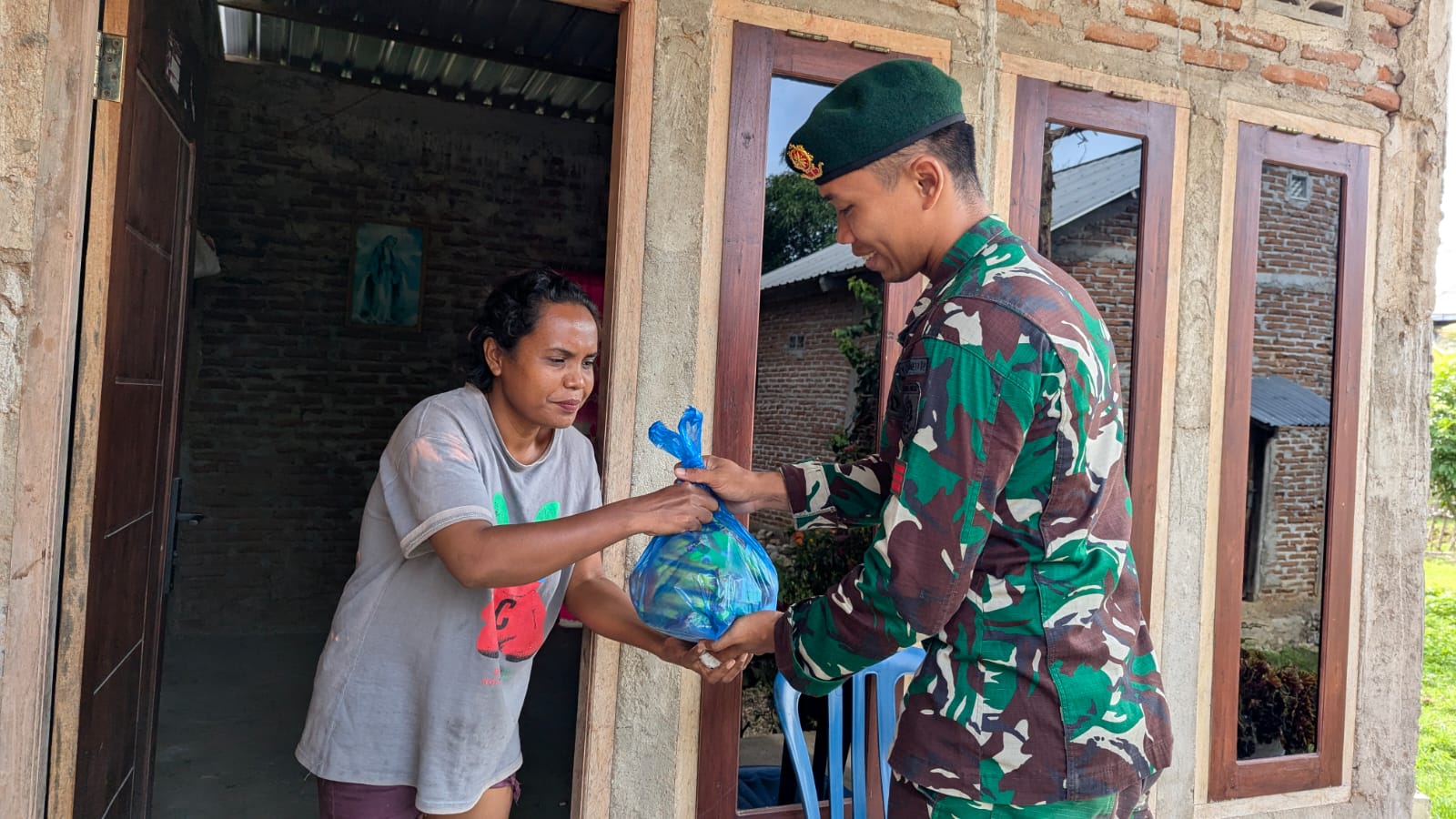 Pada kegiatan tersebut, personel Satgas membagikan paket sembako secara langsung kepada warga yang membutuhkan. Proses penyaluran dilakukan dengan pendekatan humanis sehingga masyarakat dapat merasakan perhatian dan kehangatan dari para prajurit. Warga terlihat antusias dan menyampaikan rasa terima kasih atas kepedulian Satgas.