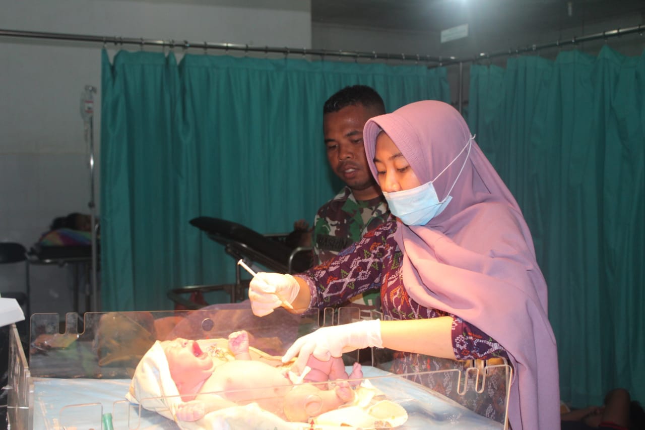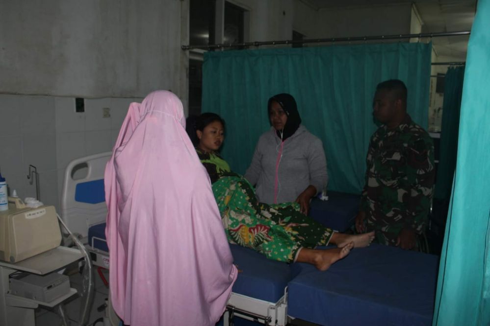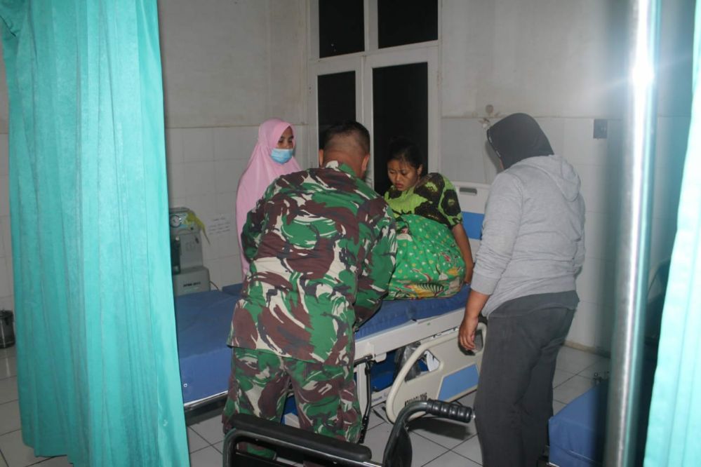 Istri dari Bapak Usman yang hendak melahirkan di Posko pengungsian belakang kantor Bupati Kab. Donggala dengan cepat dievakuasi oleh Serka Hasrin dan Praka Syahrir didampingi tim kesehatan Yoarmed 6 Kostrad Praka Yusran menggunakan mobil ambulance Yonarmed 6 Kostrad ke RS Kabelota Kab. Donggala.