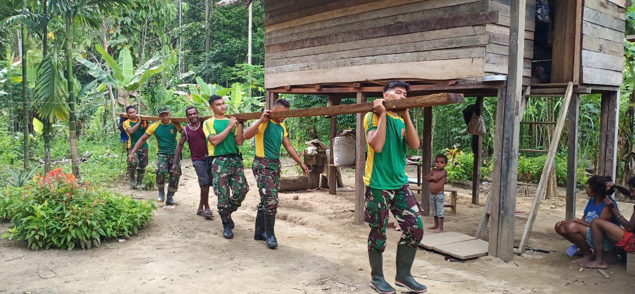 Jayapura – Satgas Pamtas RI-PNG Yonif Mekanis Raider 413 Kostrad Pos Scofro Baru merintis pembuatan Gereja di Kampung Kufu Distrik Arso Timur Kabupaten Keerom.