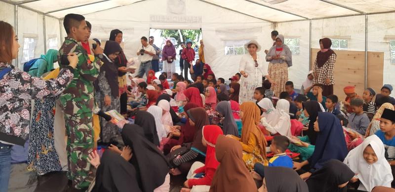 “Bantuan ini merupakan salah satu upaya mengembalikan semangat anak-anak untuk kembali sekolah meskipun baru saja ditimpa musibah, aktivitas pendidikan tidak boleh lumpuh,” kata Pasi Pers/Log Yonif Para Raider 432 Kostrad Lettu Inf Goelden.