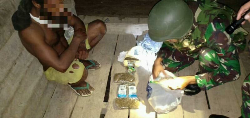 Kejadian bermula saat dilaksanakan sweeping pada pukul 20.00 WIT waktu setempat menghentikan sebuah mobil. Pada saat dilakukan pengecekan terhadap kendaraan tersebut, salah satu penumpang terlihat mencurigakan dengan tetap menggendong sebuah karung yang dibawanya. Setelah dibuka untuk melihat isinya oleh personel Satgas ditemukan delapan paket besar ganja kering dengan berat 1000 gram dan 3 linting ganja di dalam karung tersebut.