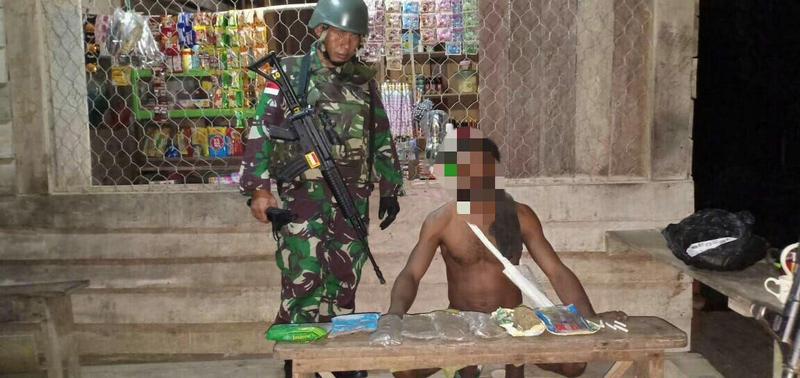 Kejadian bermula saat dilaksanakan sweeping pada pukul 20.00 WIT waktu setempat menghentikan sebuah mobil. Pada saat dilakukan pengecekan terhadap kendaraan tersebut, salah satu penumpang terlihat mencurigakan dengan tetap menggendong sebuah karung yang dibawanya. Setelah dibuka untuk melihat isinya oleh personel Satgas ditemukan delapan paket besar ganja kering dengan berat 1000 gram dan 3 linting ganja di dalam karung tersebut.