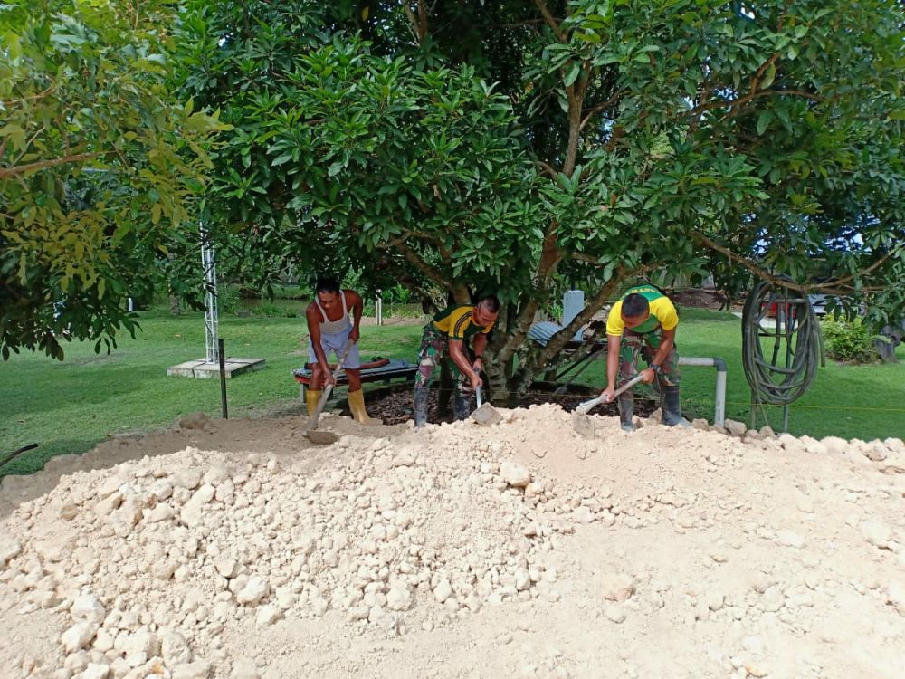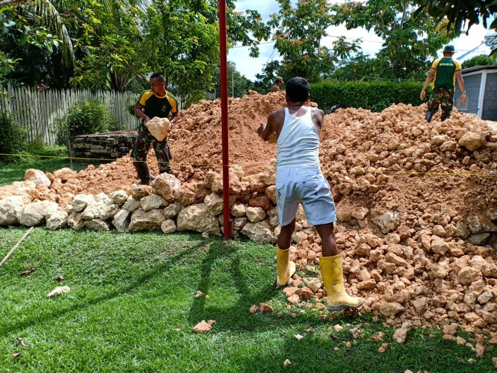 Kegiatan dimulai dengan melaksanakan pembangunan pondasi untuk rumah layak huni yang nantinya akan ditempati oleh bapak Saga, kegiatan pembangunan rumah ini juga dibantu oleh masyarakat Kampung Swakarsa yang secara bersama-sama ikut mendukung kegiatan ini.(penkostrad|red)