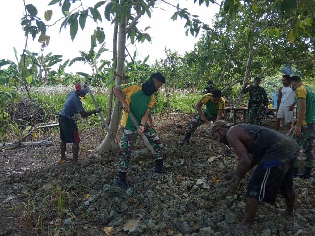 Bersama warga, personel Pos Sarmi melaksanakan pembuatan dua sumur selama tiga hari. Kepala Kampung Nikolas Sapri mengatakan, kami sangat senang dengan kedatangan bapak tentara membantu kami membuat sumur, semoga kami tidak kekurangan air lagi, karena mata air jauh dari kampung kami.