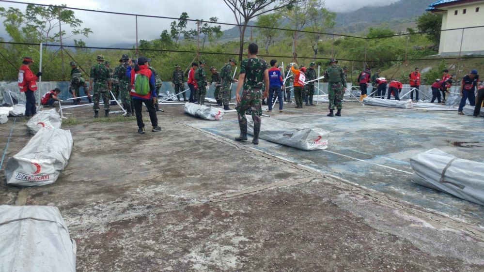 Mayor Inf Gustiawan F mengatakan pendirian tenda tersebut agar pengungsi menjadi satu titik dan pendistrubisian bantuan akan lebih mudah.(penkostrad|red)