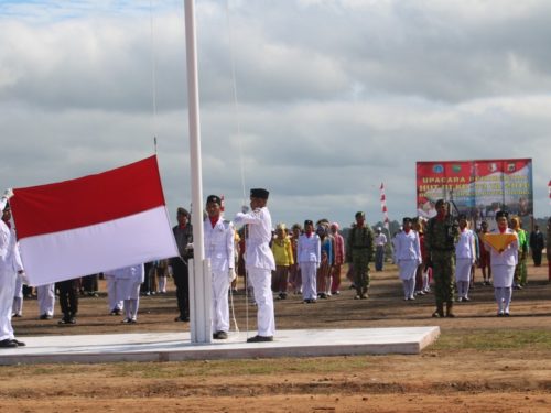 Asiki – Dalam memperingati HUT Ke-73 Kemerdekaan RI, Satgas Pamtas RI-PNG Yonif Raider 323/BP Kostrad bekerjasama dengan Pemerintahan Distrik Jair Kabupaten Bovendigoel, menggelar Upacara Peringatan Detik-Detik Proklamasi di Lapangan Sepakbola Asiki.