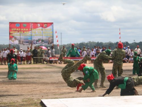Sutrisno salah seorang tamu undangan yang hadir dalam upacara ini juga mengungkapkan perasaannya, “saya bangga melihat demonstrasi keterampilan masyarakat yang berbaur dengan prajurit Satgas, belum pernah ada sebelumnya disini yang semenarik ini”.(penkostrad|red|noven)