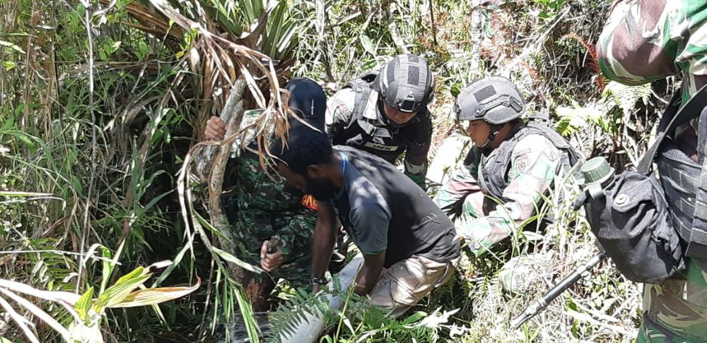 Gigobak – Satgas Pamtas RI-PNG Yonif Raider 514 Kostrad bekerjasama dengan Koramil 04/Sinak bahu membahu bersama masyarakat Kampung Gigobak 2, Distrik Sinak, Kab Puncak memperbaiki saluran air yang rusak, Selasa (2/7/19).