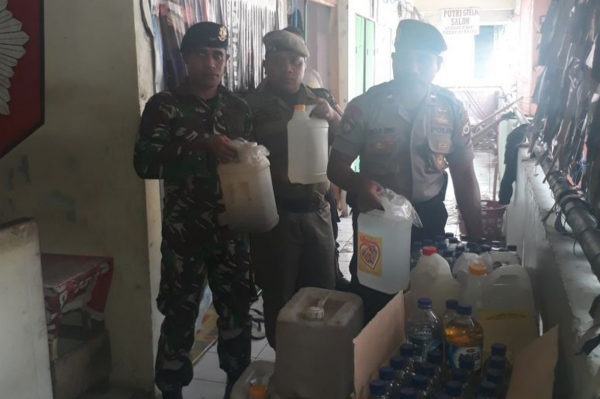 “Sebanyak 150 Liter Miras yang terdiri dari berbagai macam ukuran diantaranya, 3 Jerigen ukuran 30 Liter, 6 Jerigen ukuran 5 Liter, 3 Botol Aqua besar ukuran 1,5 Liter dan 30 Botol Aqua ukuran sedang 600 ml”, ujar Wakil Komandan Pos Mardika Sertu Mario.