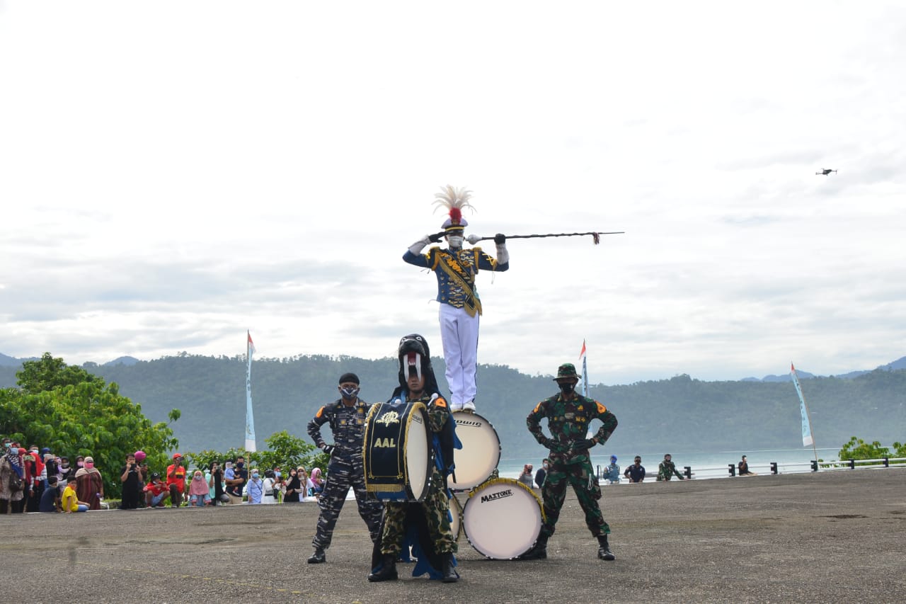 Padang – Usai mengikuti program Ketahanan Pangan, Taruna Taruni Akademi Angkatan Laut (AAL) Tingkat lll Angkatan ke-67 yang tergabung dalam Satlat Kartika Jala Krida (KJK) 2020 menampilkan display GS Gita Jala Taruna bertempat di lapangan Apel Mako Lantamal II, Minggu (11/10).