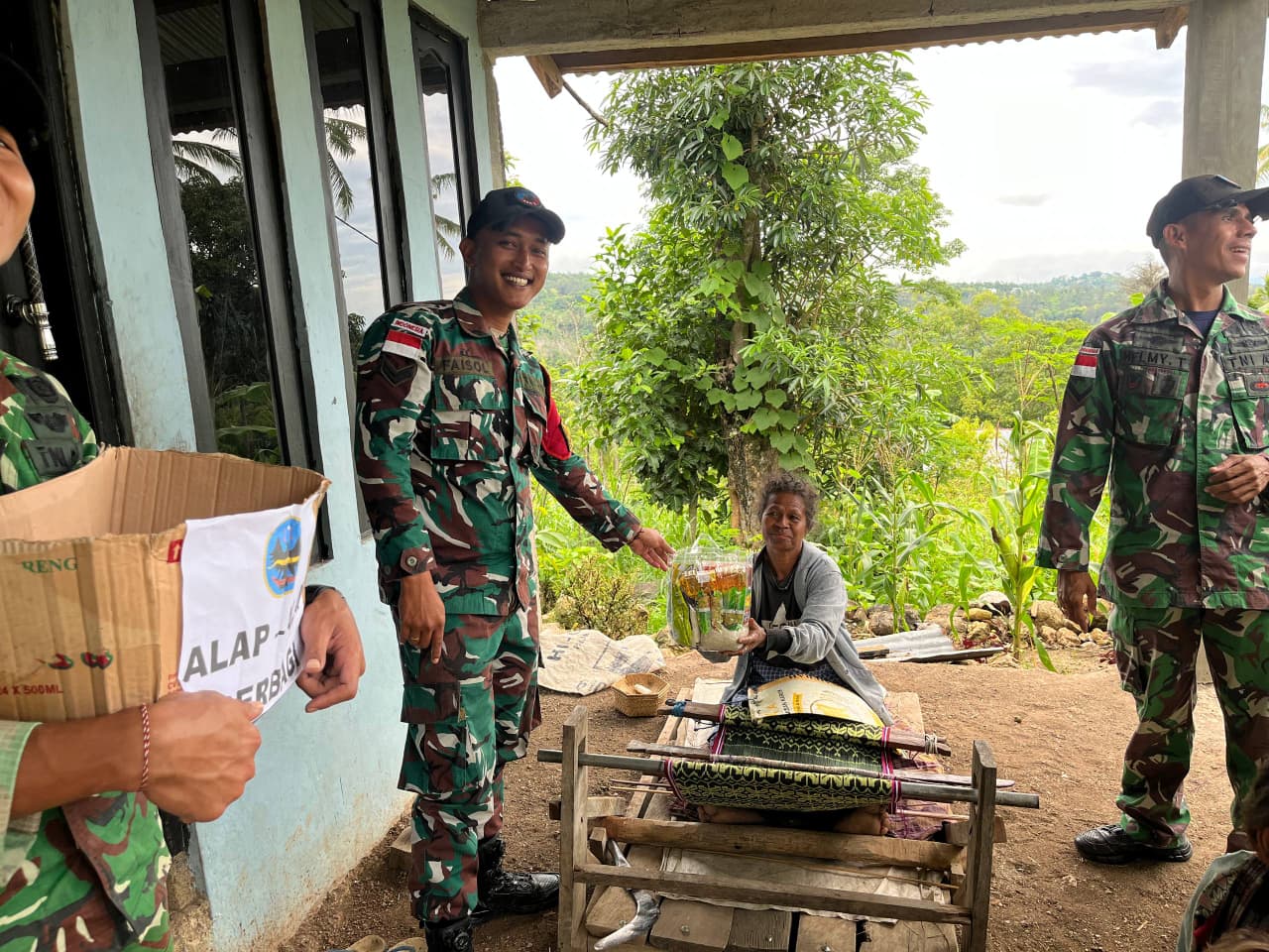 Danpos Haumeniana, Sertu Faisol menyampaikan, “Kami menyadari bahwa kehadiran kami di sini harus menjadi solusi bagi kesulitan rakyat. Pemberian sembako ini mungkin nilainya tidak seberapa, namun ini adalah bentuk kasih sayang dan kepedulian kami agar hubungan emosional antara TNI dan masyarakat tetap solid.”